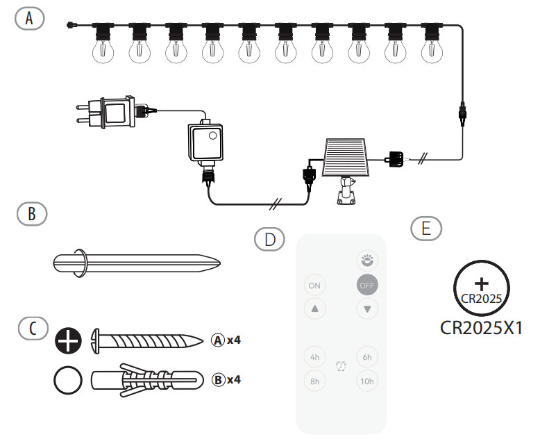 FULGOR-10L P27 LED bulb warm white string lights, IP44--Hybrid